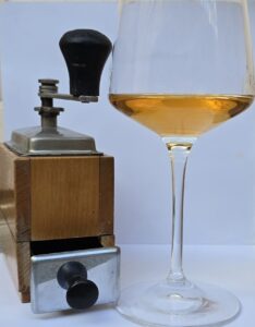 La vista ha deciso: il colore del legno, caldo e verniciato, richiama il meraviglioso tono miele-ambrato del vino. La sua forma stretta e rettangolare, le dimensioni minute, il meccanismo semplice e probabilmente ancora funzionante si accordano perfettamente con gli elementi descrittivi classici di una degustazione.